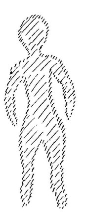 Quando os senhores se deparam com o seu próximo, encontrar-se-ão com ele com uma consciência totalmente materialista. Os senhores se dirão, sem dizê-lo em voz alta e nem mesmo em pensamento, mas nas profundezas mais íntimas de sua consciência: Esse é um ser humano de carne e sangue, esse é um ser humano de matérias terrenas. Os senhores dizem isso também do animal, como também em relação à uma planta. Mas o que os senhores dizem perante um ser humano, um animal, uma planta, podem dizer com razão apenas perante o elemento mineral, somente perante a entidade mineral. Tomemos logo o caso mais extremo, o ser humano. Consideremos o ser humano inicialmente como sendo sua forma exterior, como é formado pelo aspecto exterior. (Desenha): os senhores
