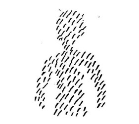 não vêem realmente, não captam com suas habilidades de percepção física o que o ser humano é segundo sua configuração, pois isso é preenchido por mais de 90% com líquido, com água. O que os senhores vêem com seus olhos físicos é o elemento mineral que preenche a figura. O que o homem reúne em si como elementos do mundo exterior mineral, é o que os senhores vêem. Os senhores não vêem o ser humano que une isso. Só estarão falando corretamente se disserem: O que está à minha frente são partículas de matéria que a figura espiritual do ser humano aglomera em si, é isso que faz com que o invisível que está à minha frente fique visível. O ser humano é invisível, realmente invisível. Todos os senhores que estão aqui sentados são invisíveis para os sentidos físicos. Mas as tantas e tantas figuras sentadas aqui juntaram, por meio de uma certa força de atração, partículas de matéria com essa forma (desenha): são essas partículas de matéria que podemos ver. Somente vemos o que é mineral. Os verdadeiros