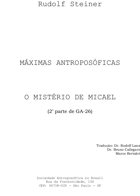 A iniciativa da Diretoria da Sociedade Antroposófica no Brasil, de publicar apostilas, visa possibilitar o acesso de membros e amigos que não dominam o idioma alemão ou outra língua na qual a obra já tenha sido publicada, a textos importantes que não constam da programação da Editora Antroposófica para um futuro próximo.